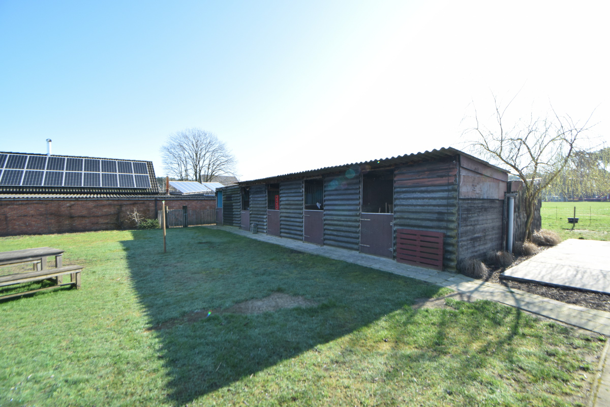 Tegen de woning is achteraan een grote bergruimte geplaatst voorzien van elektricteit en verlichting.