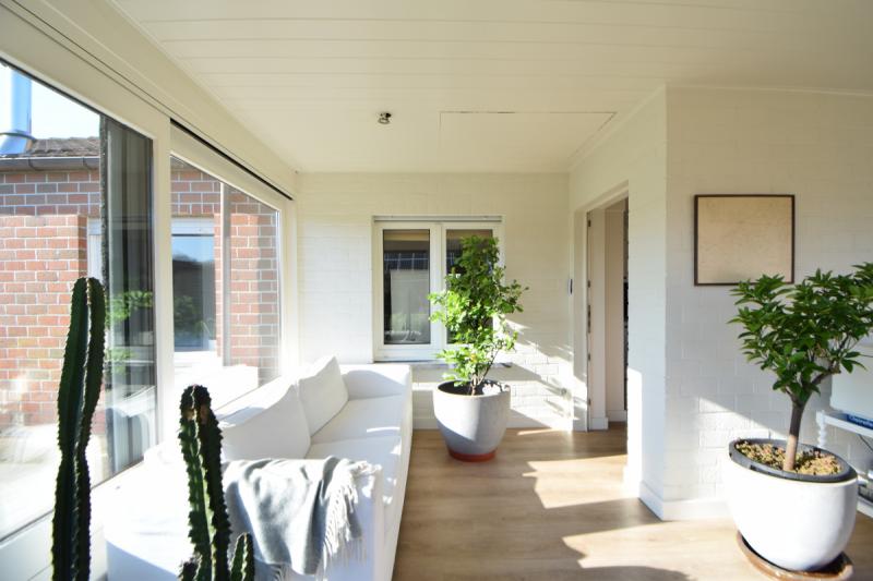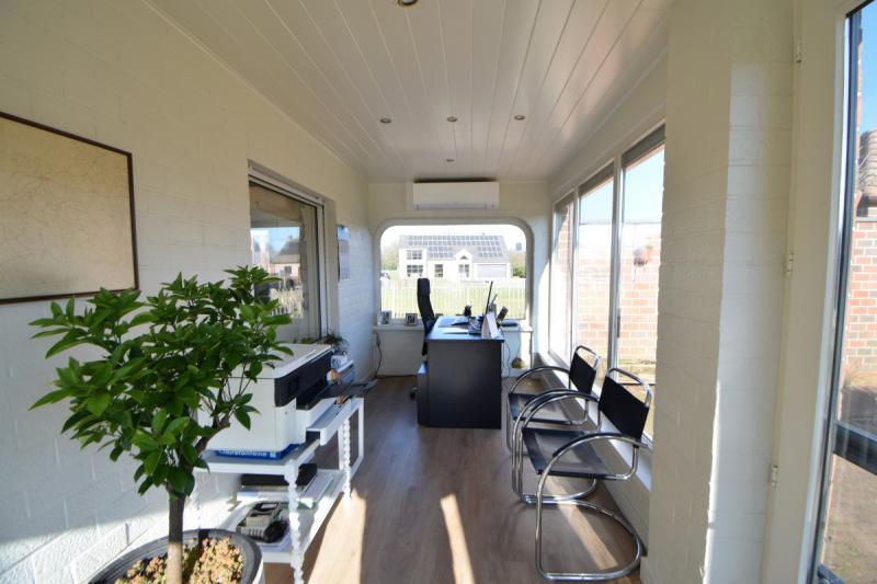 Verzorgde laagbouwwoning met 3 slaapkamer, tuin en grote garage.De woning bestaat uit een zomerkamer met zicht op de tuin die uitgeeft op de keuken met ontbijthoek, aanpalend is er een ruime leefruimte met knusse zithoek en mogelijkheid om een kachel te plaatsen. Verder is er een nachthal met apart toilet die uitgeeft op een badkamer met lavabomeubel en ligbad met douchescherm.