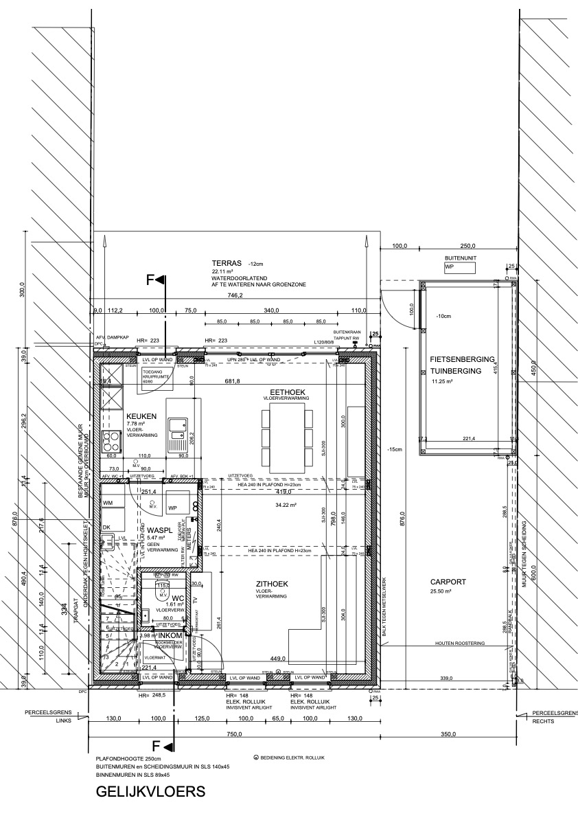 | Carport | 25,00 m˛ | Carport rechts van de woning. |
