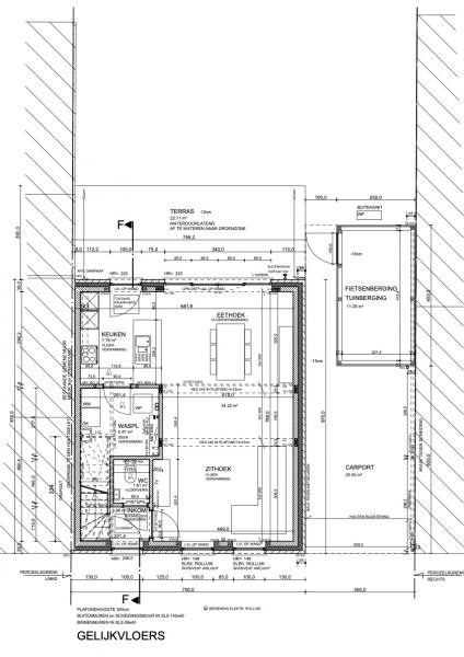 | Living | 34,22 m˛ | Leefruimte bestaande uit een zithoek en eethoek achteraan. De eethoek geeft via een schuifraam uit op het terras en de tuin achteraan. |
