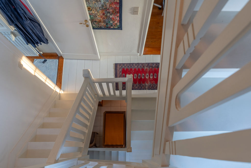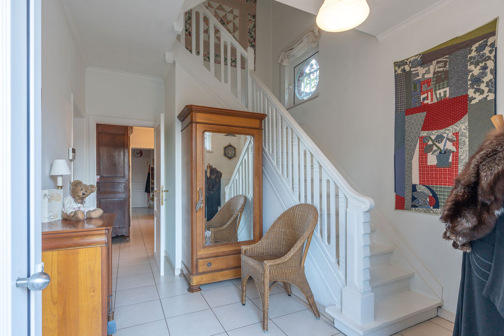 | Inkomhal | 13,20 m² | Ruime inkomhal met wit geschilderde houten trap naar de bovenverdieping. De inkomhal geeft uit op de woonkamer vooraan en de eetkamer achteraan. |
