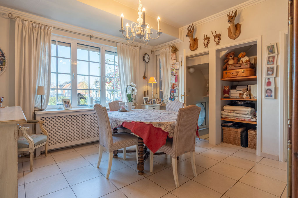 Deze charmante, authentieke woning met grote tuin is gelegen in het centrum van Tielen. De Art Deco woning heeft een perceeloppervlakte van maar liefst 1.191m² met een gunstige zuidwestelijke oriëntatie. De tuin is deels achter de woning gelegen maar ook rechts van de woning, de woning kan naar rechts uitgebreid worden, wat potentieel interessant is om extra woonruimte, kantoor of praktijkruimte te creëren, de ideale mix van wonen en werken.De indeling is als volgt: inkomhal met trap naar de 1ste verdieping, de inkomhal geeft vooraan uit op de leefruimte bestaande uit een zitplaats aan de voorzijde en een woonkamer met houtkachel achteraan. De woonkamer geeft uit op de zomerkamer met zicht op het terras en de tuin en op de keuken. Aanpalend aan de keuken is er een eetkamer en achteraan een wasruimte met ingemaakte kasten.
