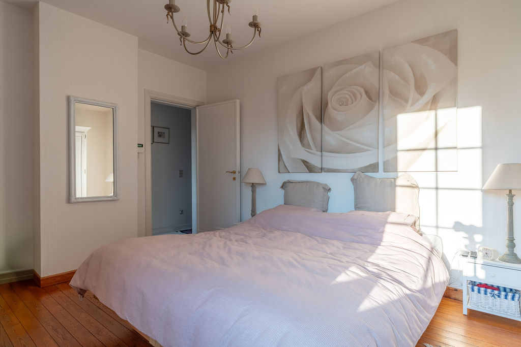 | Slaapkamer 2 | 15,75 m² | Grote slaapkamer achteraan met zicht op de tuin, houten planchet vloerbekleding. |