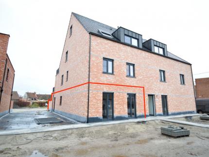 Gelijkvloers nieuwbouw appartement met 2 slaapkamers, tuin met terras, ondergrondse garage en grote berging, centraal gelegen nabij het centrum van Tielen.Het appartement is 100mē groot en is als volgt ingedeeld: inkomhal met aanpalend gastentoilet en vestiaire, de inkomhal geeft achteraan uit op een zeer ruime leefruimte met zithoek, eethoek en een volledig ingerichte open keuken (fornuis, inbouw ijskast, microgolf-oven, vaatwasser, ...).