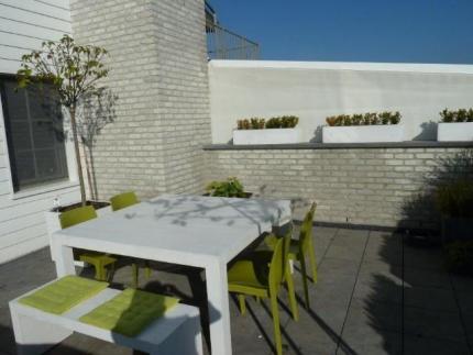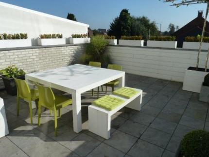 Aansluitend aan de living en de keuken is er een gezellig groot terras (33mē).