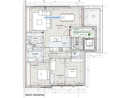 Appartement van 129,13m˛, met 3 ruime slaapkamers en groot terras op de eerste verdieping in een modern kleinschalig nieuwbouwproject met 3 appartementen, Residentie EBENORA IV.Het appartement is ZEER ENERGIEZUINIG.