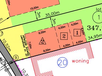 Bebouwbare voorgevelbreedte 7 meter, bouwdiepte gelijkvloers 17 meter.