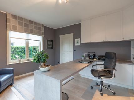 | Bureau | 15,54 m˛ | Aan de straatzijde en aanpalend aan de woonkamer is een ingerichte bureauruimte voorzien met ingemaakte kastenwand. |