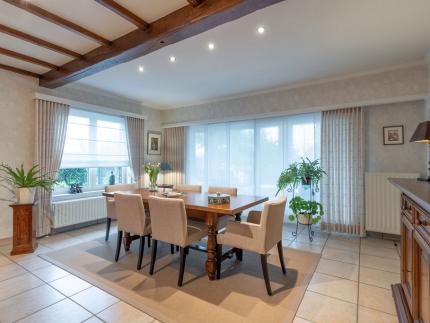 Zeer verzorgde villa met 4 slaapkamers en prachtige tuin op 1.242m˛.De villa bestaat uit een inkomhal met apart gastentoilet, vestiaire en trap naar de bovenverdieping.
