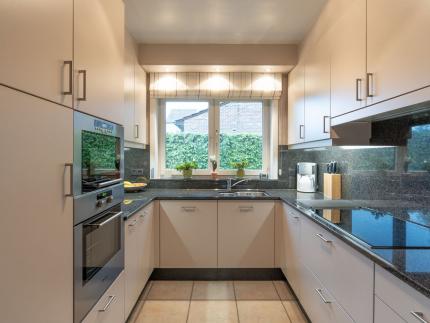Achteraan de woning is er een recente ingerichte keuken en ontbijthoek met zicht op de prachtige tuin.