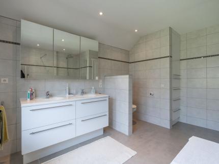| Badkamer 1 | 10,89 m˛ | Ruime badkamer met dubbel lavabomeubel, toilet en zeer grote inloopdouche. |
