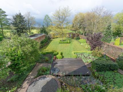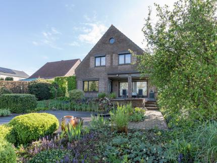 | Tuin | Prachtige tuin met volledig aangelegd met vijverpartij en terras, prachtige bloemperken, hagen en centraal een karaktervolle boom, achteraan is er een tuinhuis geplaatst |