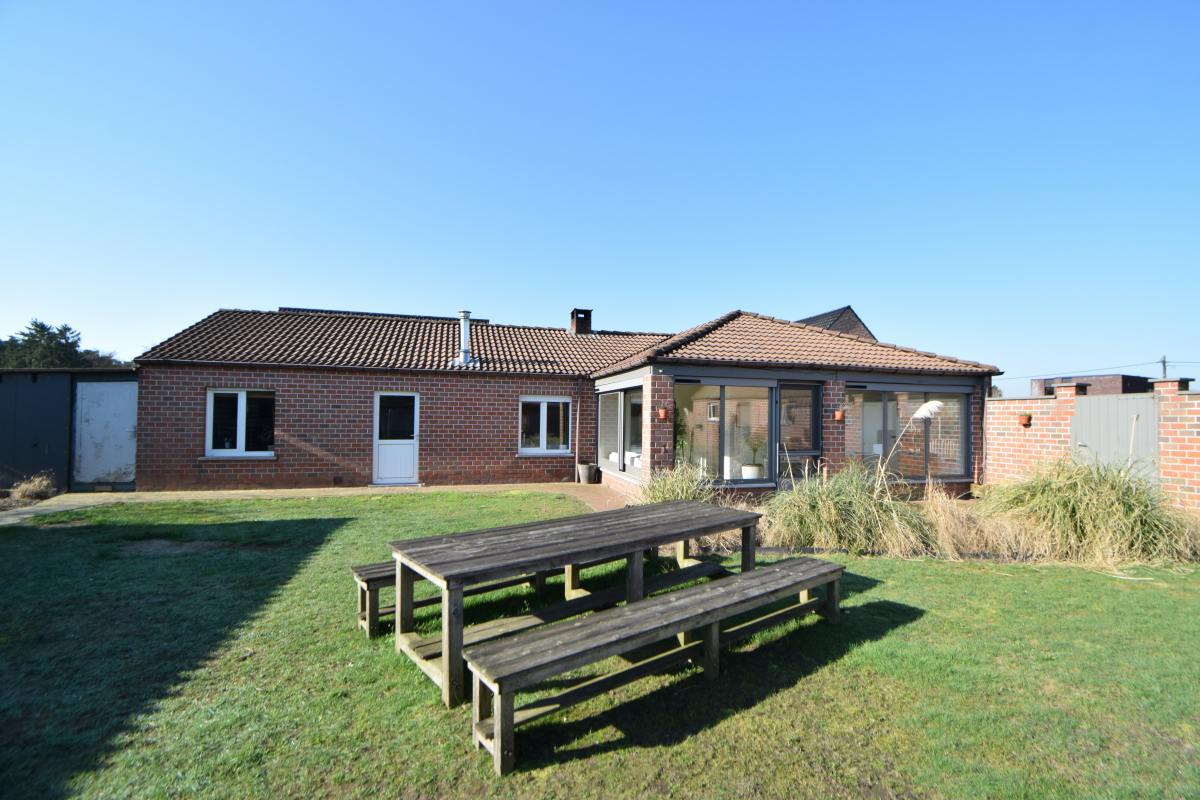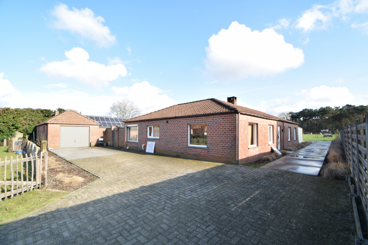 Verzorgde laagbouwwoning met 3 slaapkamer, tuin en grote garage.De woning bestaat uit een zomerkamer met zicht op de tuin die uitgeeft op de keuken met ontbijthoek, aanpalend is er een ruime leefruimte met knusse zithoek en mogelijkheid om een kachel te plaatsen. Verder is er een nachthal met apart toilet die uitgeeft op een badkamer met lavabomeubel en ligbad met douchescherm.