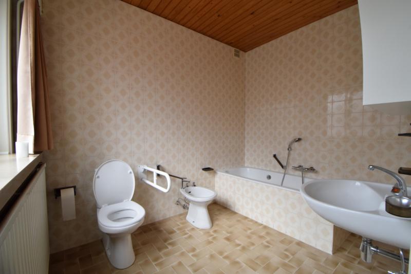 Achteraan de woning is er een badkamer met lavabomeubel, douche (huidig ligbad wordt vervangen) en toilet.