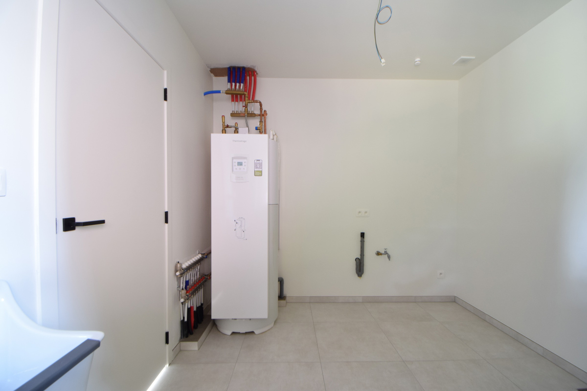 Berging | 7,81 m˛ | Bergruimte ter hoogte van de zij-ingang en naast de keuken met uitgietbak en aansluiting voor wasmachine en droogkast, hier is ook de warmtepomp geplaatst. |