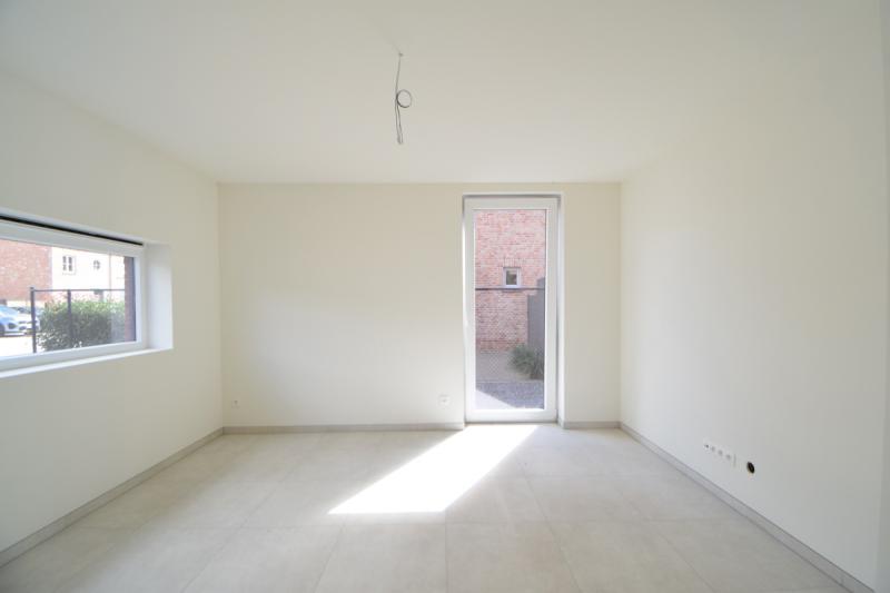Indeling: inkomhal met gastentoilet en trap naar de bovenverdieping. De inkomhal geeft uit op een leefruimte bestaande uit een zithoek vooraan en een eethoek achteraan met volledig geďnstalleerde open keuken met ontbijthoek die via een schuifraam uitgeeft op het terras en de tuin achteraan. Aansluitend is er een wasruimte met een achterinkom.