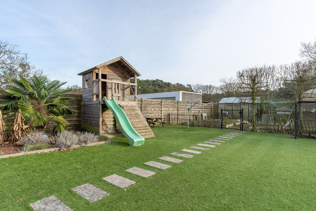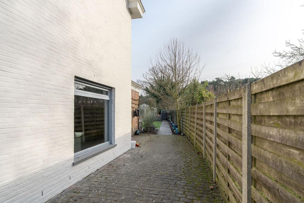 | Tuin | De tuin is aangelegd en afgesloten met een poort, naast de woning is een fietsenberging voorzien en een carport. Achteraan in de tuin is er een moestuin voorzien met serres die mits compensatie kunnen blijven staan. |