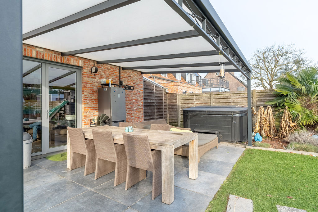 Buiten is het minstens even aangenaam vertoeven. De grote, volledig afgesloten zuidgeoriënteerd tuin vormt een echte troef. Hier geniet u de hele dag van de zon in alle privacy. In het achterste deel van de tuin is een moestuin voorzien, de serres kunnen mits compensatie blijven staan.