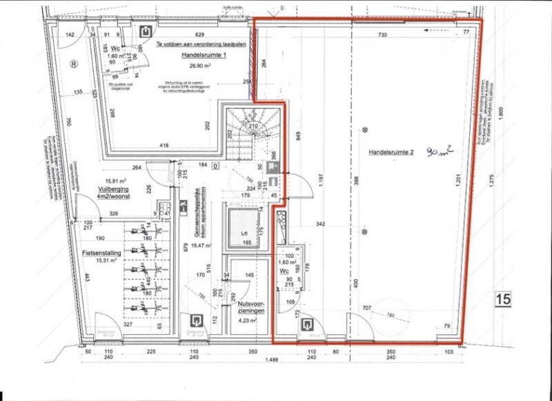 Nieuwbouw handelsgelijkvloers/ kantoorruimte op een commerciële zichtlocatie in het centrum van Kasterlee met parkeerplaatsen voor de deur.De ruimte is 90m² groot met een groot uitstalraam vooraan, alsook een groot raam achteraan, uitermate geschikt als winkel, kantoorruimte of ruimte voor vrij beroep. Er is een apart toilet voorzien en een mogelijkheid om een kitchenette te plaatsen.