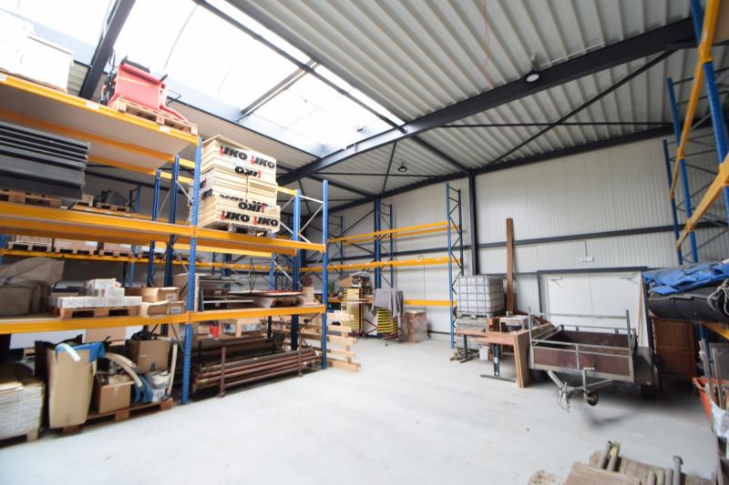 Het magazijn is geïsoleerd en is voorzien van een gepolierde betonvloer, heeft een vrije hoogte van 5,50 meter en is toegankelijk via een elektrische sectionaal poort van 4,5meter hoogte x 4,5 meter breedte.