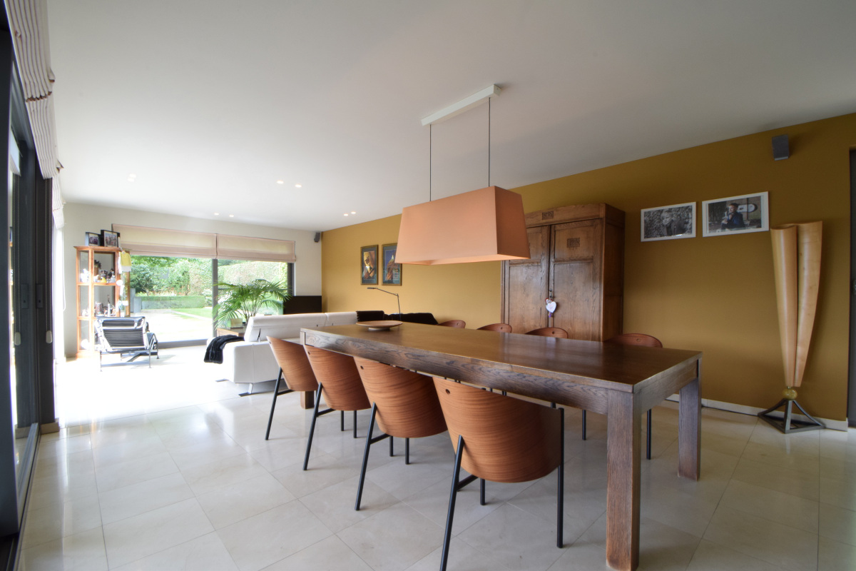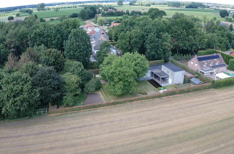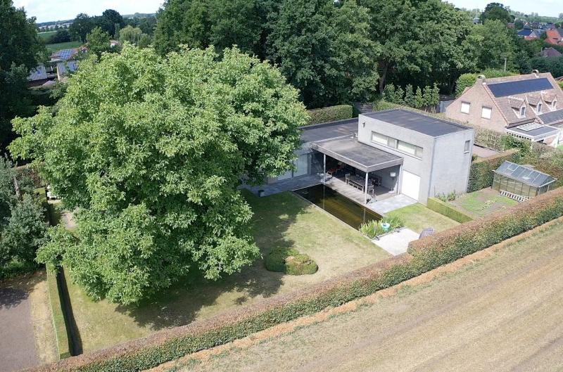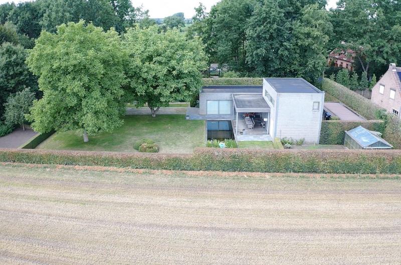 MODERNE vrijstaande villa, met 2 grote slaapkamers, 2 badkamers met een prachtige tuin van van 3.000m˛. Erg rustig gelegen, midden in het groen.Indeling: inkomhal, knappe leefruimte met veel lichtinval bestaande uit een grote zithoek met eetplaats die via grote schuiframen uitgeven op het terras en de tuin. Verder is er een volledig ingerichte open keuken (keramisch fornuis, oven, inbouwijskast, vaatwasser, … ) met aansluitend een bergruimte en cv-ruimte met aansluiting voor wasmachine en droogkast en voldoende kastruimte.