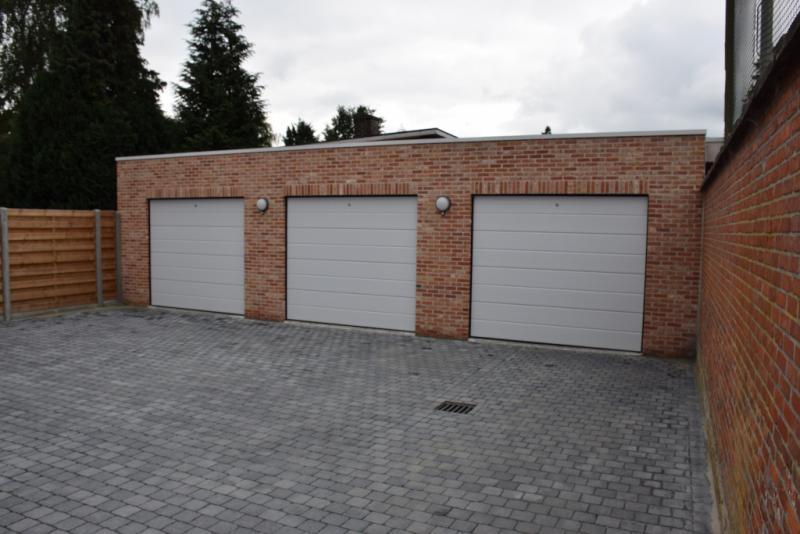Per appartement is er een individuele garage met elektrische sectionaalpoort die de koper moet aankopen (verkoopprijs kleine garage 19.000,-, grote garage 21.000,-).