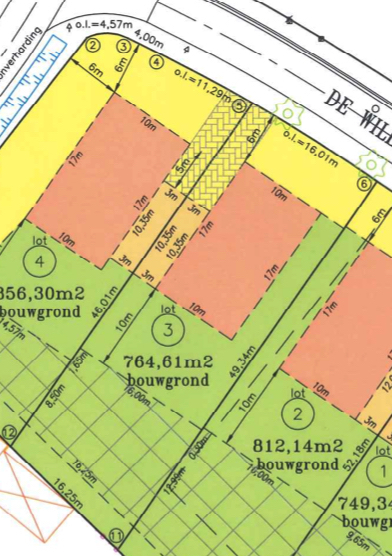 In de zijtuinstrook ter hoogte van lot 4 is een garage of carport toegelaten en achteraan is een zone voor bijgebouwen voorzien met een maximale oppervlakte van 75m˛.