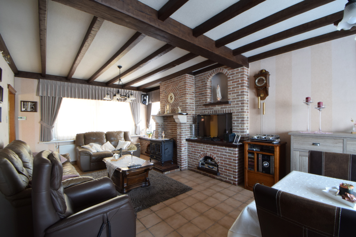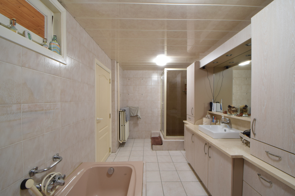 De woning beschikt eveneens over een kleine droge kelder en achteraan is er een wasruimte waar ook de Buderus verwarmingsketel op aardgas is geplaatst. Aansluitend is er een grote garage en een werkhuis.