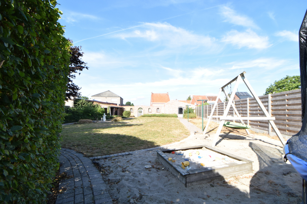 | Tuin | Grote tuin deels aangelegd en met achteraan een gedeelte met berghok interessant voor een moestuin, kippenren, ... . |