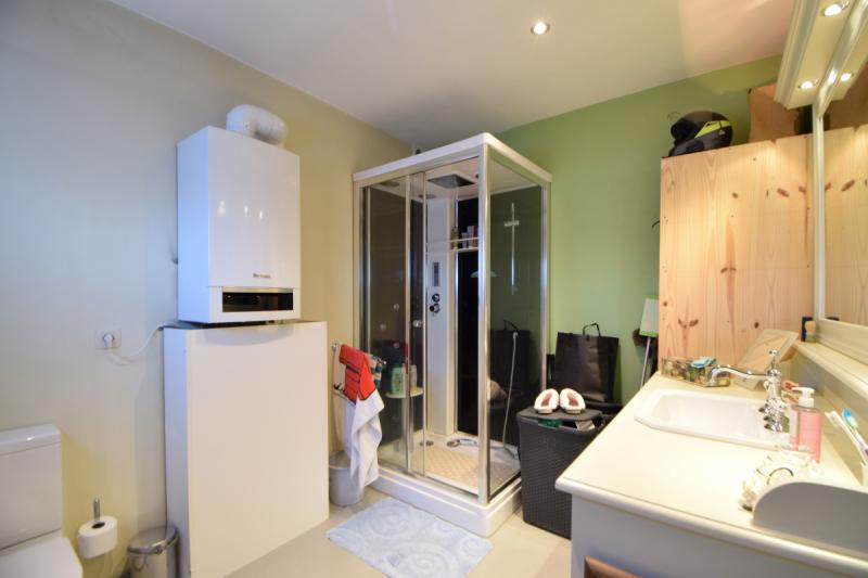 Achteraan de keuken is er een badkamer met toilet, lavabomeubel en douchecabine. Hier is ook de verwarmingsketel op aardgas geplaatst.