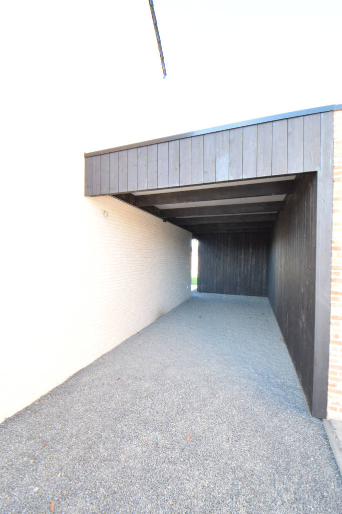 Naast de woning bevindt zich een oprit en een zeer ruime carport en een tuinberging.