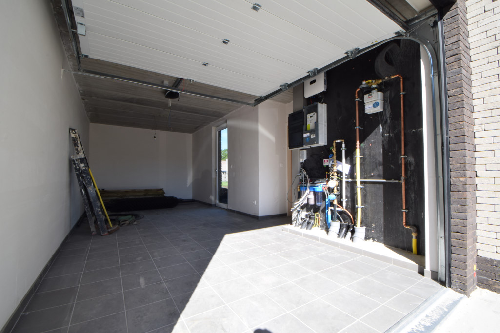 Naast de woning bevindt zich een zeer ruime garage die bereikbaar is vanuit de leefruimte en vanuit de tuin.