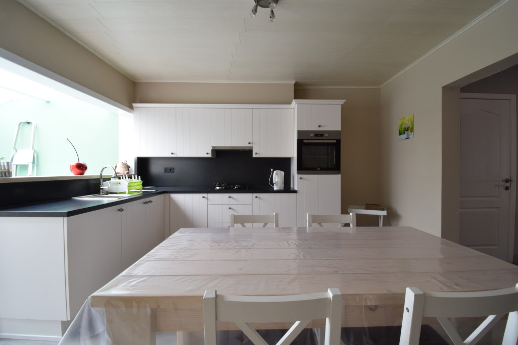 | Keuken 1 | 14.5 mē | Open keuken met eethoek. De keuken is volledig nieuw en volledig uitgerust (gasfornuis, afzuigkap, pompsteen, oven en inbouwijskast). |
