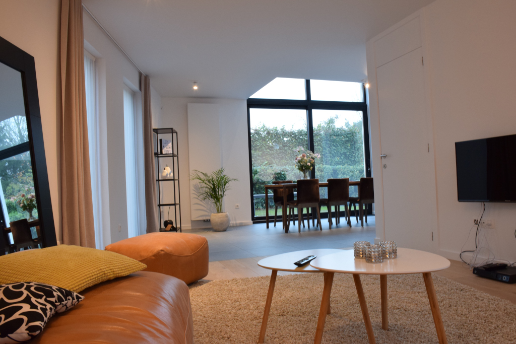 | Living | 37 mē | Ruime woonkamer met zithoek vooraan en eethoek achteraan aansluitend aan de open keuken. |