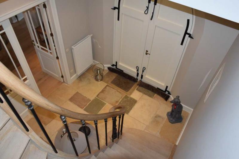 | Inkomhal | 12 mē | Imposante inkomhal met 2-delige inkomdeur en statige houten trap naar de bovenverdieping. Vloer in Bourgondische tegels. |