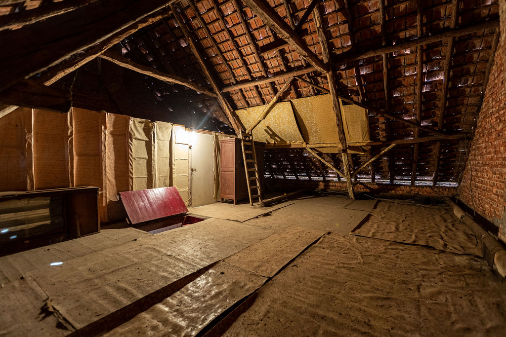 Het linkerdeel bestaat uit een voormalige stal met zolderruimte.